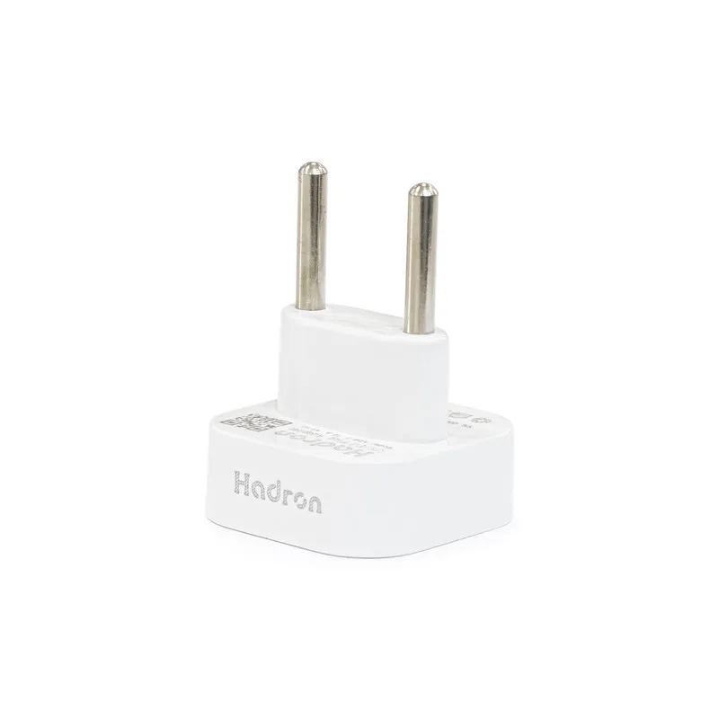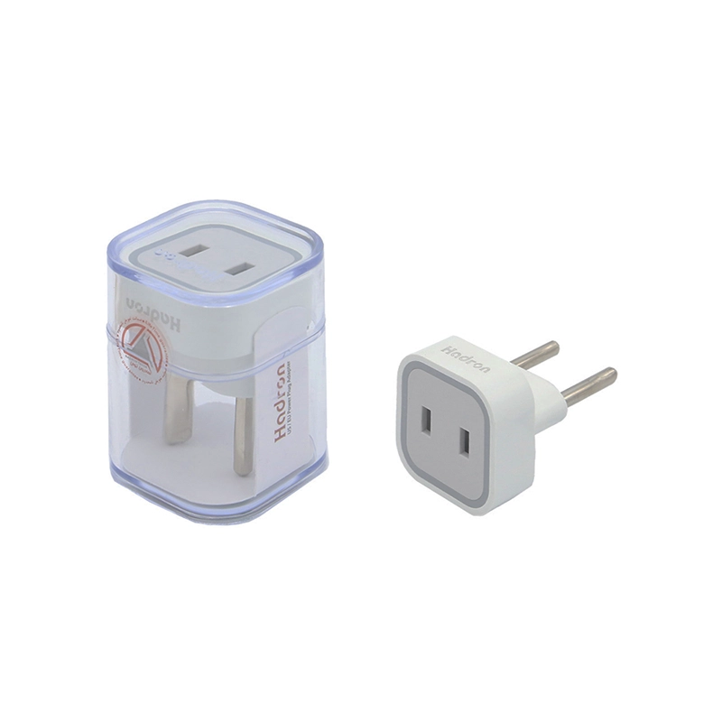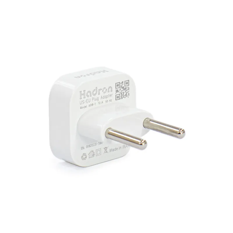 تبدیل دو به دو هادرون، یک وسیله کمحجم برای اتصال دستگاههای با سوکتهای برق امریکایی به پریز ایرانی است. این محصول با ابعاد بسیار کوچک، زیبایی چشمگیر، و اتصال قوی به سوکت، یک انتخاب عالی برای اتصال به پریزهای ایرانی محسوب میشود. خاصیت فنری پریز و لرزشهای مینیمال دستتان، باعث میشود که ارتباط دوشاخه با پریز به صورت متناوب قطع و وصل گردد، این ویژگی باعث ایجاد جرقههای پیاپی در کسری از ثانیه شده و به دلیل وجود خاصیت سلفی (مغناطیسی) در سیمها و پدیده رزونانس، در برخی موارد ممکن است ولتاژ برق به دستگاه آسیب بزند. این هادرون با ایجاد اتصال محکمی بین دوشاخه و سوکت، از جابهجایی دوشاخه جلوگیری میکند. ولتاژ کاری این تبدیل تا 250 ولت متناوب و حداکثر جریان انتقالی آن 10 آمپر میباشد.